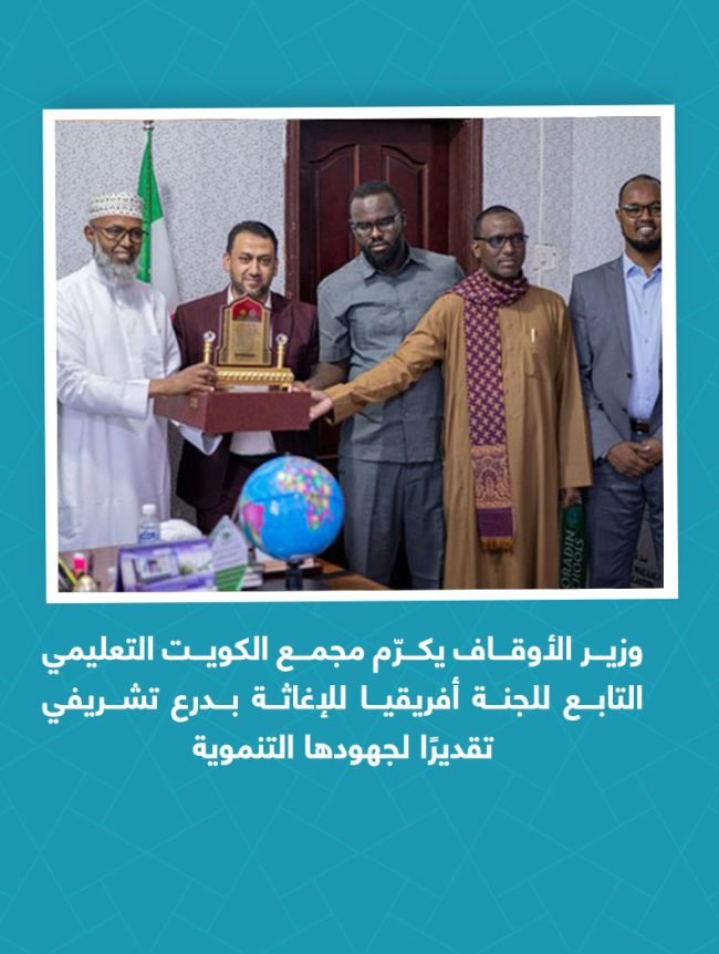 في لفتة تقديرية، قام وزير الأوقاف والشؤون الإسلامية في صوماليلاند، الشيخ محمـد حاج آدم علك، بدعوة إدارة المؤسسة ومجمع الكويت التعليمي إلى جلسة تكريمية، حيث منح المجمع درعًا تشريفيًا تقديرًا لجهوده الملموسة وأعماله الرائدة في مختلف أنحاء البلاد. وقد خص الوزير بالذكر الدكتور عبد الرحمن المعلمي، مشيدًا بجهوده الكبيرة في تطوير مستوى التعليم والأوقاف والتنمية…